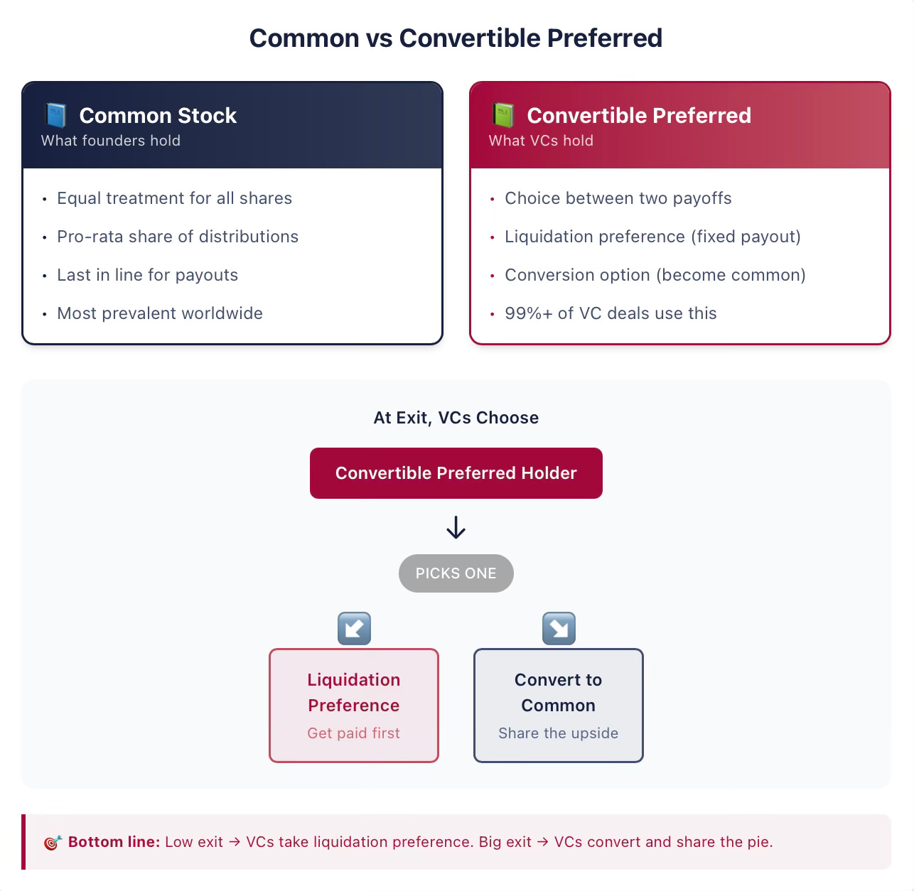 VC contracts typically call this security Preferred stock, but when you see Preferred stock in a VC contract or a term sheet, you can safely assume it is also convertible. In my analysis of thousands of VC contracts, more than 99% of ‘Preferred stock’ is actually convertible.